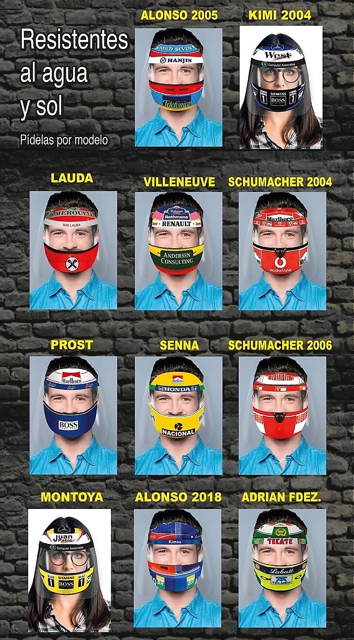 Эволюционируют и дизайнерские подходы к средствам защиты: мексиканская компания под управлением Нельсона Карденаса вдохновилась шлемами культовых гонщиков, когда создавала свои защитные экраны из пластика. Все знаковые фигуры «Формулы-1» на месте – от Лауды и Шумахера до Райкконена и Алонсо.