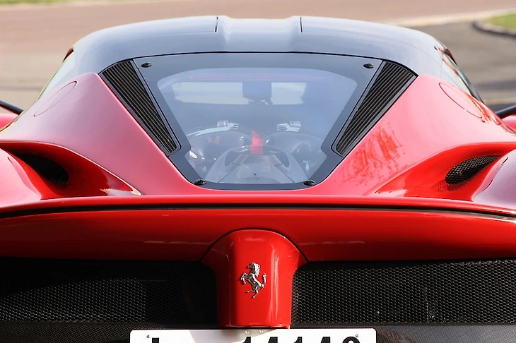 Обед окончен. Мы возвращаемся в Фиорано. Мой LaFerrari надраили до блеска. Заметив большую выпуклость углеродного волокна между спинками сидений, я спросил Симатти, не мог ли он застрять в маленьком отсеке для хранения. «Это топливный бак», – отвечает он с улыбкой. – «Он изгибается сзади и между сиденьями. Вот что я имел в виду, когда сказал [предыдущим вечером], что есть разница между «внутренним пространством» и «пространством, необходимым для вождения». По этой же причине пространство для ног пассажира сокращается за счет того, что кондиционер установлен прямо перед проемом для ног, что помогает держать приборную панель в низком положении».
