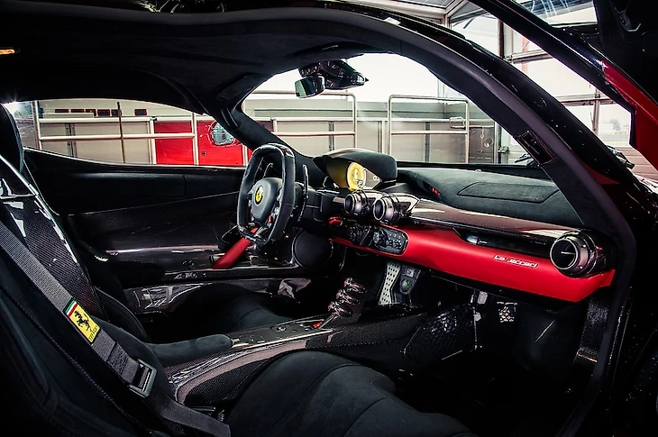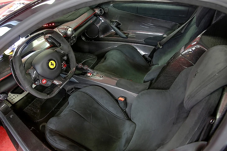 Хотя LaFerrari не требует от своих обитателей размера и гибкости гонщиков «Формулы-1», их места в салоне, объясняет Симатти, «вдохновлены откинутым положением гонщиков Формулы-1, которое позволяет эффективно использовать пространство». Он уточняет: «Мы хотели, чтобы в салоне было такое же пространство, как у Enzo, но, чтобы было место для шлемов. Мы экспериментировали с тем, как далеко мы могли бы откинуть сиденье, и в итоге получили еще семь градусов наклона спинки сиденья. Что-то большее, чем это, создало бы чрезмерное давление на шеи пассажиров». Тем не менее, изменение положения сиденья и отсутствие отдельной конструкции сиденья привели к тому, что инженеры «Феррари» получили 6 см вертикального пространства кабины (для шлемов), в то время как общая высота автомобиля была уменьшена на 3 см.