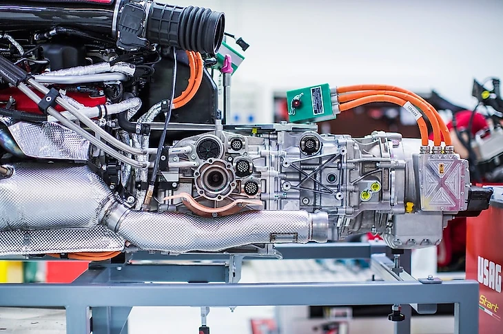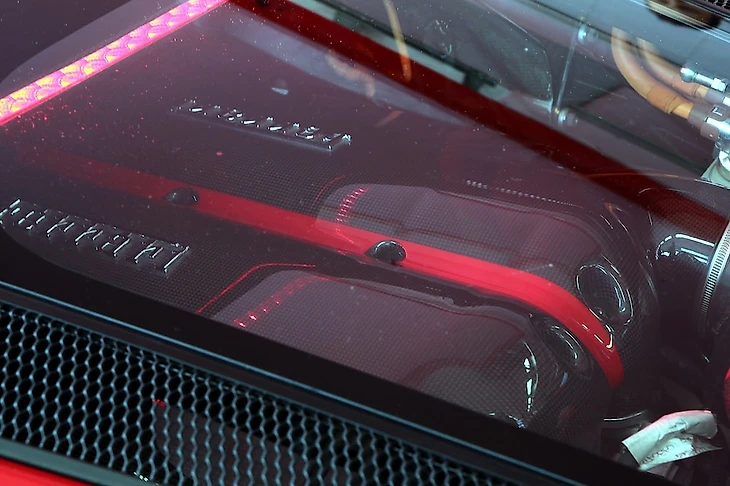 Мотор V12 находится за батареями и топливным баком и, конечно, сопровождается семиступенчатой коробкой передач с двойным сцеплением. Электродвигатель Magneti Marelli крепится к задней части коробки передач через редуктор, а два электрических инвертора установлены на верхней части корпуса коробки передач. Этот электродвигатель находится в самой задней части автомобиля, что помогает объяснить, почему пространство в салоне – и пространство в целом – в этом автомобиле стоит на таком высоком уровне. При этом размер салона остался на уровне Enzo.