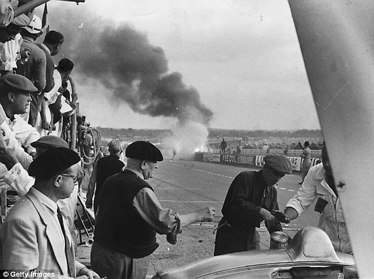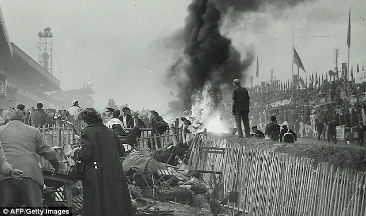 Среди 300 000 зрителей были десятки тысяч британцев, которые пришли посмотреть знаменитую 24-часовую гонку. Но несчастных - раненых и мертвых – увозили на рекламных щитах, которые превратились в самодельные носилки, после того, как «Мерседес» француза Пьера Левега срикошетил на трибуну на стартовой прямой.