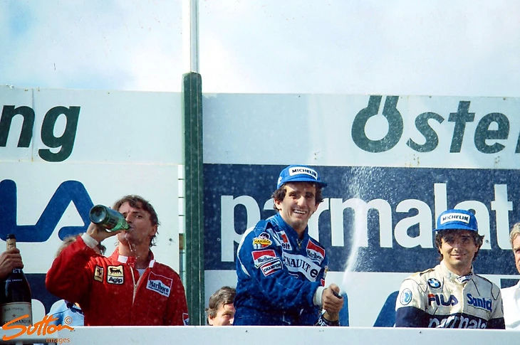 Прост, Сенна и Альборето были в центре внимания. Француз прошел их обоих в борьбе за третье место, оставив их воевать между собой до тех пор, пока в результате этого Сенне не пришлось ехать на пит-стоп за новым носовым обтекателем.