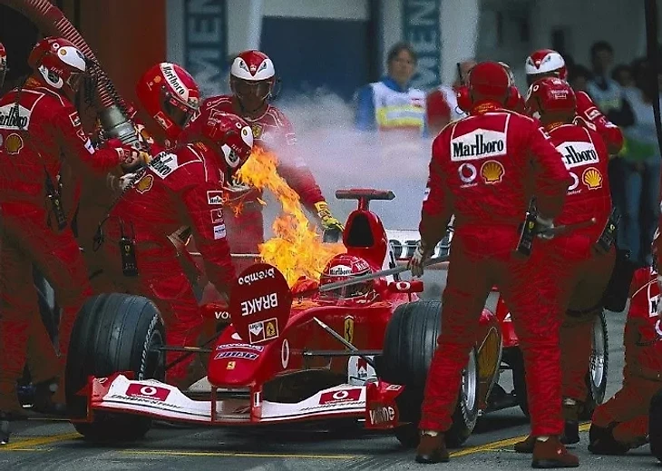10. Шумахер горит, но в гонке все равно побеждает. 2003