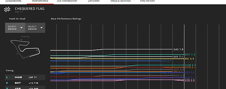 На официальном сайте «Формулы-1» в разделе лайвтайминга на странице «выступлений» опубликовали оценки пилотам за Гран-при Штирии.