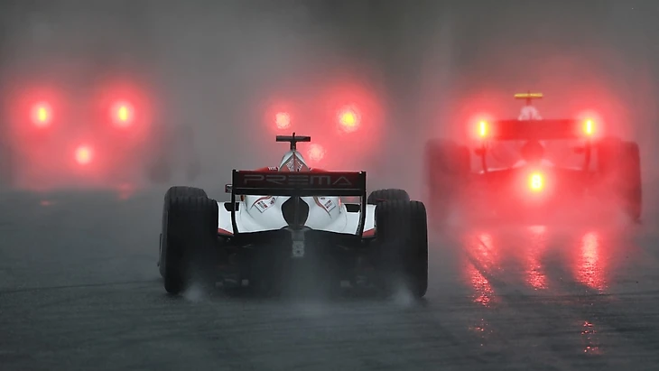 В итоге все пилоты выстроились за машиной безопасности и стартовали спустя 4 круга под желтыми флагами. Состояние трассы и видимость оставляли желать лучшего, поэтому все пилоты поначалу осторожничали. Никто не хотел рисковать сходом и стартом из хвоста пелотона в спринтерской гонке.