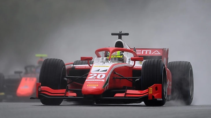 Дождь стихал, трасса начала немного подсыхать. В таких условиях Шуми поехал быстрее. Сначала он опередил Луку Гиотто, а затем его жертвой стал Джек Эйткен. После того, как все пилоты побывали на пит-стопе (и после вылета Кристиана Лундгаарда) Мик Шумахер вышел на пятое место и начал стремительно догонять пару Чжоу-Айлотт.