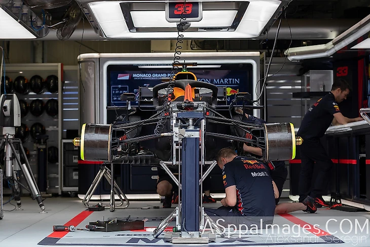 Макс Ферстаппен устремляется из бокса на свой быстрый круг по трассе в Монако, Red Bull F1 Racing Team, фоторепортаж с этапа “Формулы-1” в Монако, МАЙ 2019. © Фотоагентство ASppaImages ANO (АСППА ИМАДЖЕС АНО) email: aspressphoto@gmail.com Фотожурналист Александр Серегин