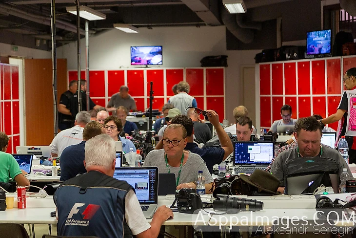Сами условия медиа-центра всегда разные. На старых трассах – хуже, на новых, отличные. Например в Монако, сам медиа-центр находится на втором этаже административного здания, место для журналистов удобное, для фотографов – менее удобное, так площадь очень ограничена, а людей много. Кто пораньше приезжает, тот может расположиться в основном зале, где сидят пишущие журналисты и некоторые ТВ-шники. Еда в виде сухих сендвичей бывает раз-два за день (бесплатная), но надо успеть ухватить хотя бы эту булку, иначе придётся сидеть на воде или заранее брать с собой что-то. В центре стоят автоматы с шоколадными батончиками и напитками, но это все-равно расходы от 3 до 20 евро в день за весьма сомнительную еду.