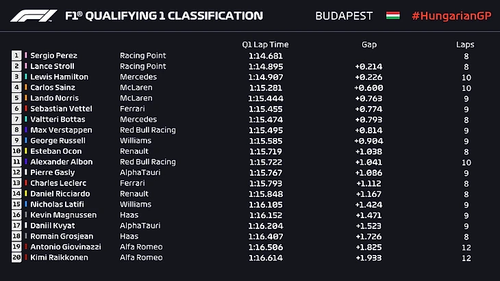 15:30 По итогам тренировок расстановка сил кажется удручающей: кажется, у «Мерседеса» в Венгрии нет конкурентов. Единственные, кому удалось быть более-менее близко к чемпионам – «Рейсинг Пойнт», которые по сути, являются розовыми «Мерседесами». Если вы вдруг не в курсе – команда скопировала практически всю прошлогоднюю машину «Мерседеса».