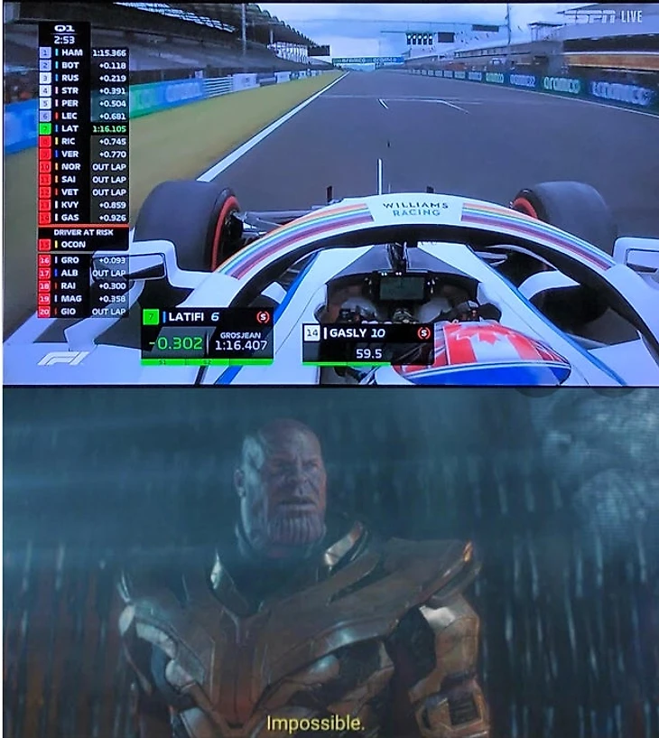 Зон вылета: Расселл, Албон, Окон, Латифи и Гасли (без времени).