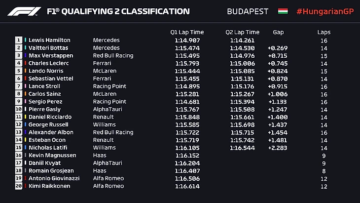 16:41 Q2 закончен! И вылетели Риккардо, Расселл, Албон, Окон и Латифи! А Гасли все же в топ-10!