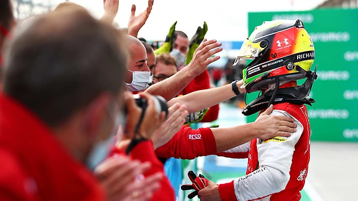 Внезапно угрозой стал недавно сменивший шины Роберт Шварцман, который отставал от Шумахера на 15 секунд. Разница в темпе была такая, что он буквально за три круга съел этот отрыв и без труда проехал своего напарника. А на предпоследнем круге Мик стал жертвой еще одного пилота на свежих шинах. В борьбе за второе место он пропустил еще одного россиянина - Никиту Мазепина. В итоге Шуми финишировал третьим, но отставание от Шварцмана составило целых 23 секунды, а от Мазепина - 7. Это к вопросу о преимуществе свежих шин…