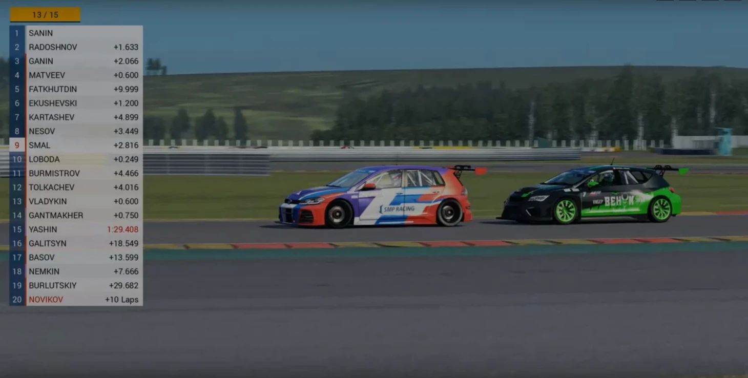 Киберчемпионат гоночной серии SMP Racing прошёл в два этапа — 10 мая и 6 июня. В зачете еТУРИНГ гонщики соревновались на симуляторе Assetto Corsa, на старт вышли 30 профессиональных пилотов российской серии.