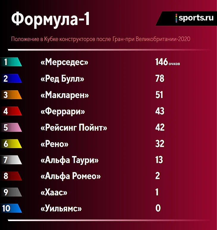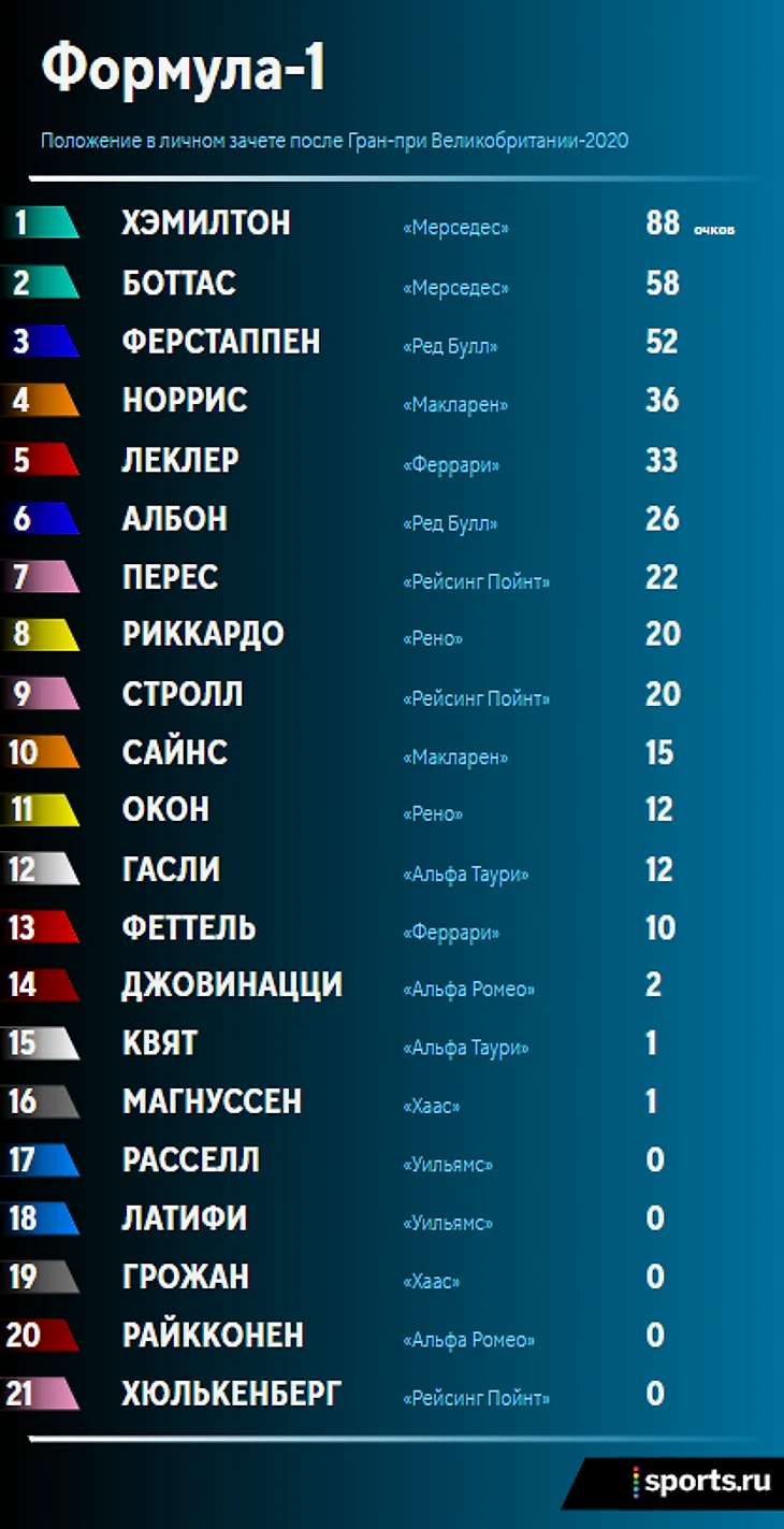 17:55 Положение в личном зачете и Кубке конструкторов.