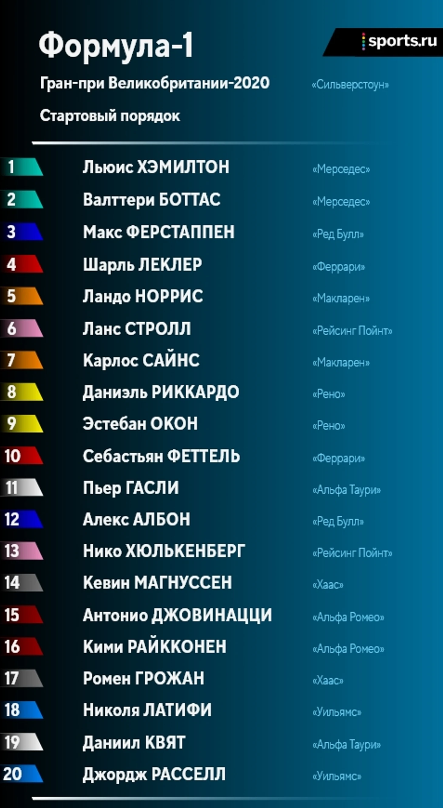15:45 Пришло подтверждение от «Рейсинг Пойнт» – Хюлькенберг начинает гонку с пит-лейн. Что сказать, будет интересно последить за прорывом Нико на очень быстрой машине.