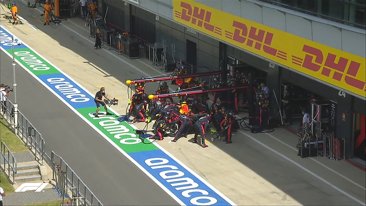 23-й круг Сайнс, отбившись от Норриса, решил активизироваться и пытается пройти Грожана – который пока не останавливался в боксах и благодаря этому выбрался на пятую позицию.