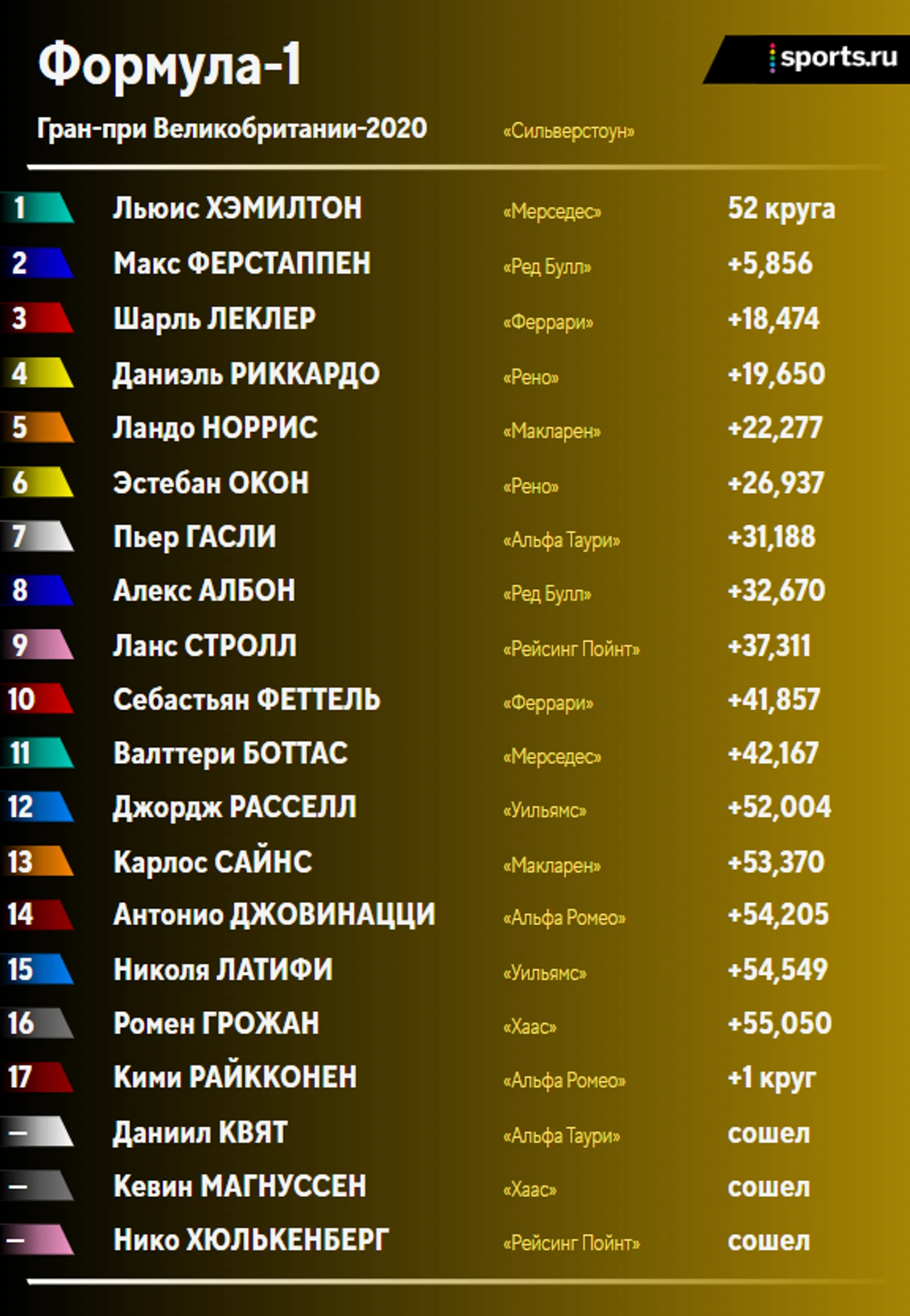 Хэмилтон выиграл Гран-при Великобритании с проколом, Леклер на подиуме, Квят попал в аварию