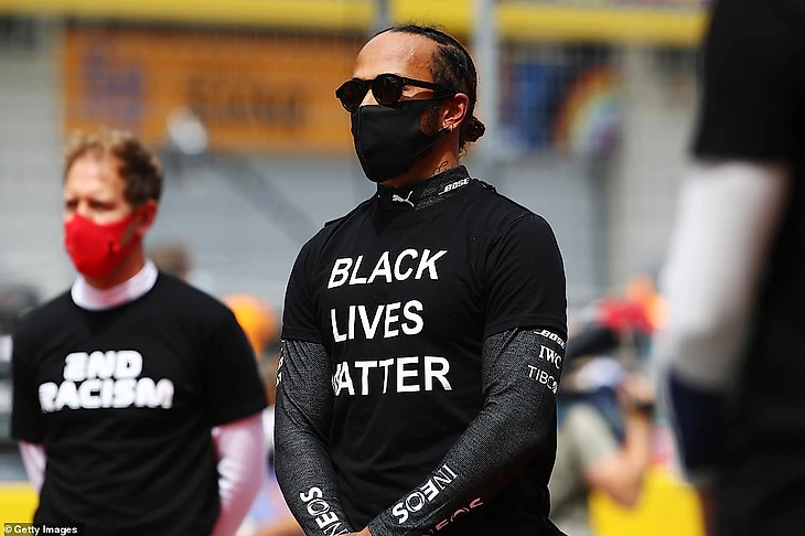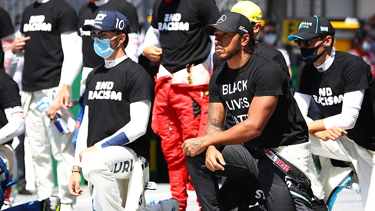 Но Хэмилтону мало быть в образе поп-звезды. И он выбрал новый вектор. Теперь он борец за права темнокожих, защитник угнетённых и страж справедливости. Новый сезон Формулы 1, который наконец стартовал, больше запомнился не борьбой на трассе, а спекуляциями на тему того кто как отнёсся к акции в поддержку движения Black Lives Matter и призывами Хэмилтона преклонить колено.