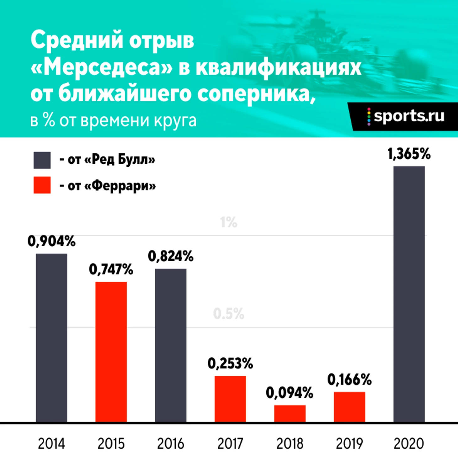 Специально для проверки этого заявления авторитетный журналист Марк Хьюз раcсчитал средние отрывы чемпионов от соперников в квалификациях в процентах за весь сезон – и вот что у него получилось.