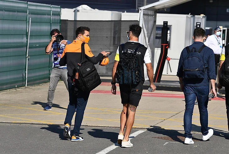 Один из таких и возник на парковке рядом с Сильверстоуном перед Гран-при Великобритании: Даниэль Риккардо из «Рено» выгружался из машины со своей командой – и перегородил дорогу Ландо Норрису из «Макларена». №4, видимо, попросил №3 убраться с пути – и получил в ответ немного теплых приветствий от будущего напарника и его тренера.