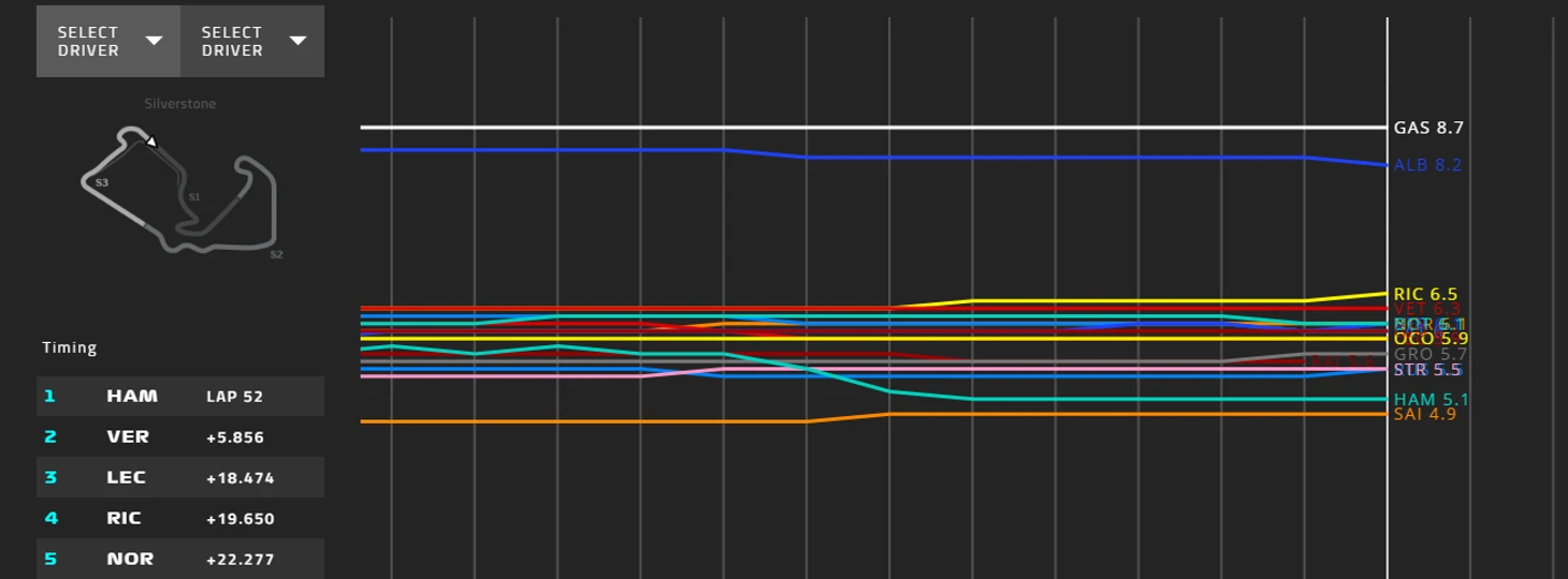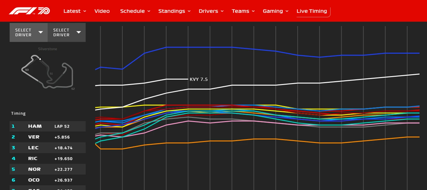 После каждой гонки на официальном сайте «Формулы-1» в разделе лайвтайминга на странице «выступлений» публикуются оценки пилотам за Гран-при по данным телеметрии. Вот – рейтинг после заезда в Великобритании.