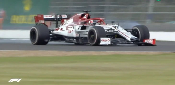 Вот и за несколько кругов до финиша Гран-при Великобритании от машины Райкконена отлетел здоровенный кусок переднего антикрыла.