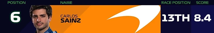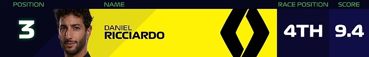 На официальном сайте «Формулы-1» после каждого Гран-при выпускают чарт лучших гонщиков. Его формирует объединение пяти экспертов на основании пяти ключевых характеристик без влияния уровня машины. Оценки экспертов сводят в единый «гоночный рейтинг», с помощью которого в процессе сезона высчитают топ-10 по сезону, а также средний балл ко конкретному этапу.