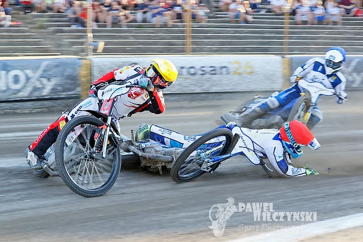 Хозяева начали с очень сильного заезда - двойной победы Михала Грухальски и Кима Нильсона. Мгновение спустя в юниорском заезде произошел сюрприз. Матеуш Черняк уступил Францису Густу. 17-летний латыш ещё раз подтвердил, что у него большой потенциал. Забегая вперед, скажем, что он набрал 6 очков с двумя бонусами и ни разу не финишировал последним.