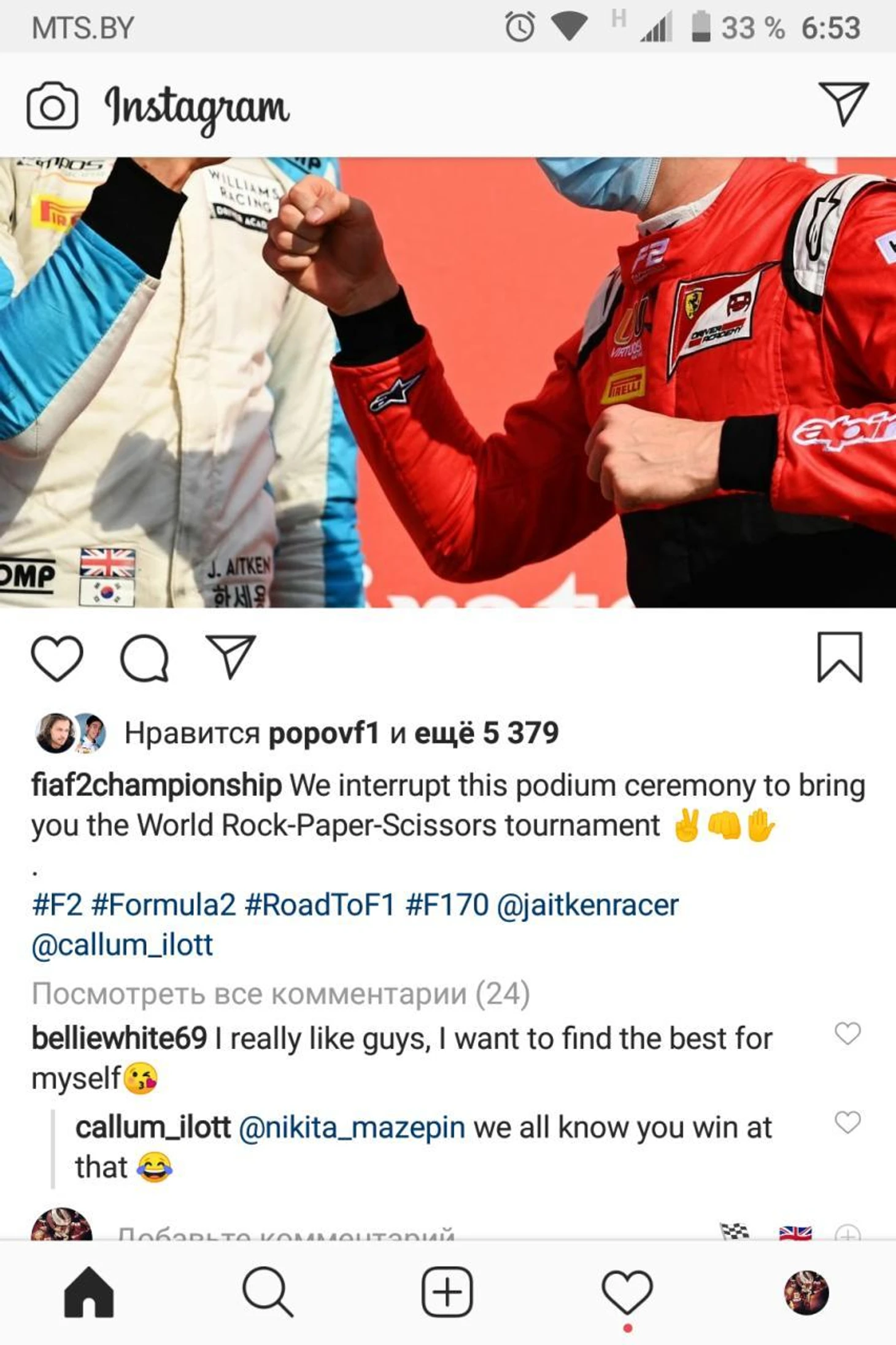 Например, под одном из постов в инстаграме «Формулы-2» лидер чемпионата Каллум Айлотт ответил боту, зазывающему в эротический аккаунт, как раз с отсылкой и стебом над Мазепиным.