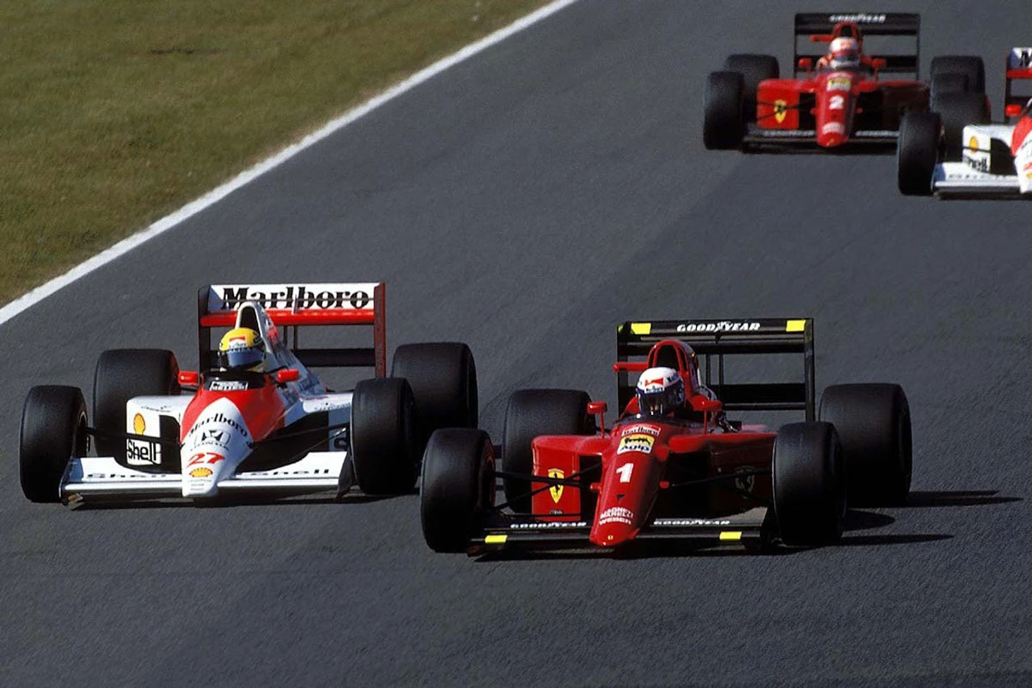 В 1989-ом году у Проста окончательно разладились отношения с Роном Деннисом. Взяв напоследок чемпионский титул, французский пилот в статусе уже 3-х кратного чемпиона перешел в стан Ferrari. При помощи Проста Ferrari наконец-то удалось построить по-настоящему конкурентоспособную машину. И сезон 1990 должен был стать новым раундом противостояния, как Ferrari vs McLaren, так и Прост vs Сенна.