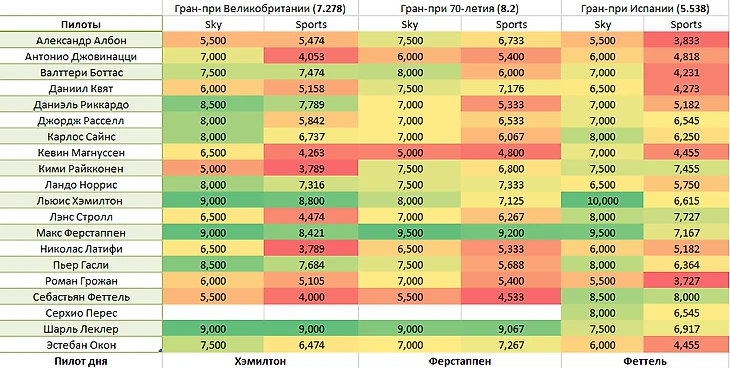 Оценки по Гран-при Испании, который набрал 5.538 баллов: