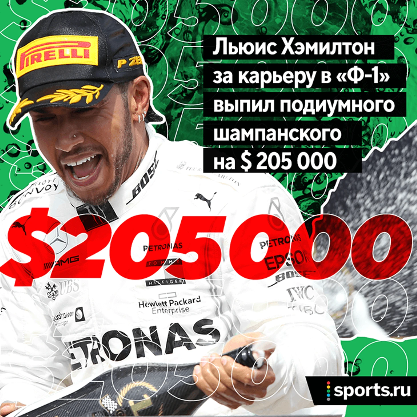 Льюис Хэмилтон за карьеру в «Ф-1» выпил подиумного шампанского на $200 тысяч! Просто призовые бутылки нереально дорогие