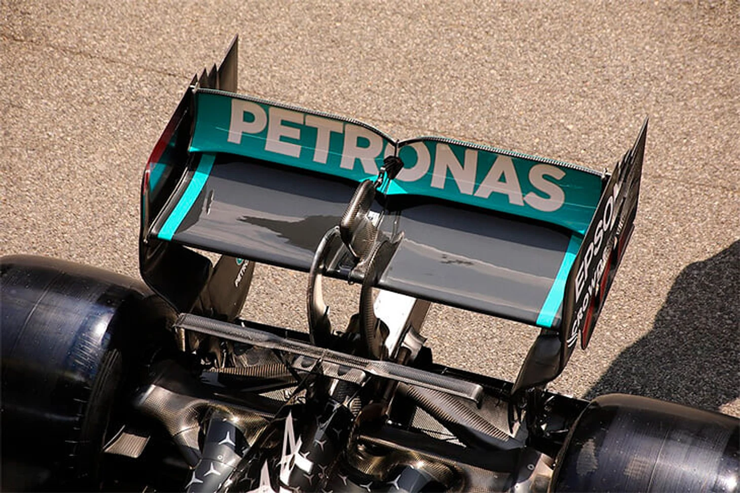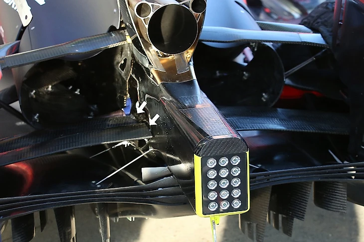 Настолько низкого расположения двух ключевых элементов болида не видели с 2013-го. Благодаря креплению и форме пилонов они по сути воспроизводят эффект двойного диффузора, повышая прижимную силу в задней часть без увеличения количества лобового сопротивления.