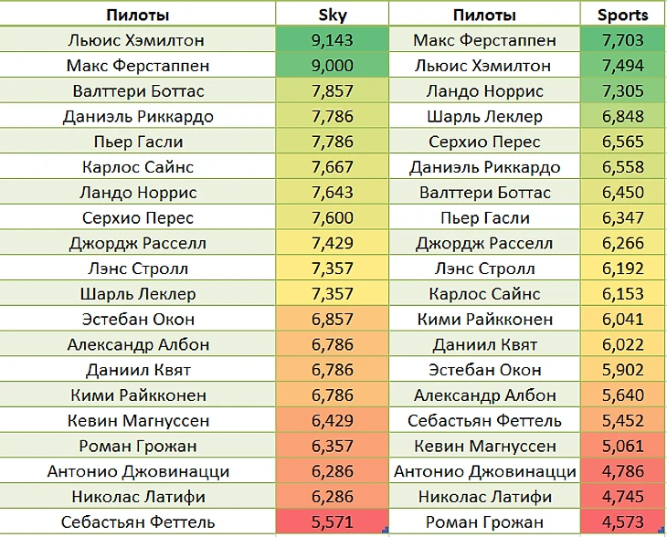Оценки по Гран-при Бельгии, который набрал 5.818 баллов: