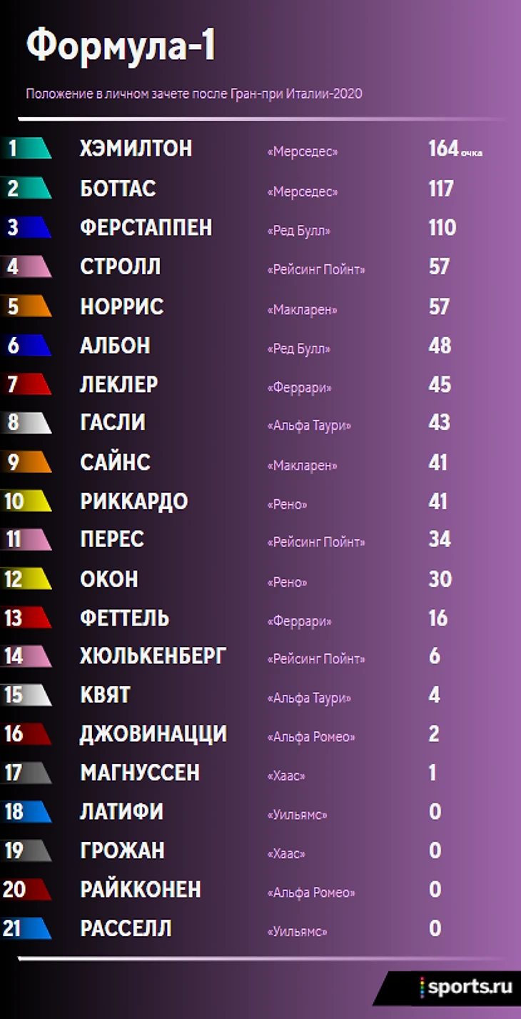 А вот текущее положение. Но Хэмилтон отвалится вниз.