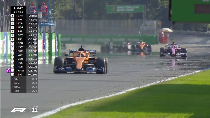 53-й круг Пьер Гасли выигрывает Гран-при Италии! И приносит команде победу в домашней гонке! Вау!
