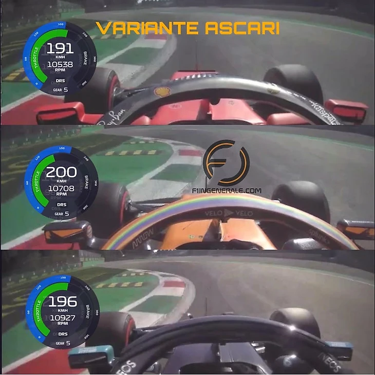 Как видите, «Макларен» рвал в повороте «Аскари» даже быстрее короля виражей «Мерседеса» – хотя именно в Италии оранжевый болид настроили на минимальную прижимную силу и лобовое сопротивление. Это значит, что Карлос атаковал безо всякой стопроцентной уверенности в балансе машины в повороте – его могло сорвать в любой момент! И однажды даже сорвало.