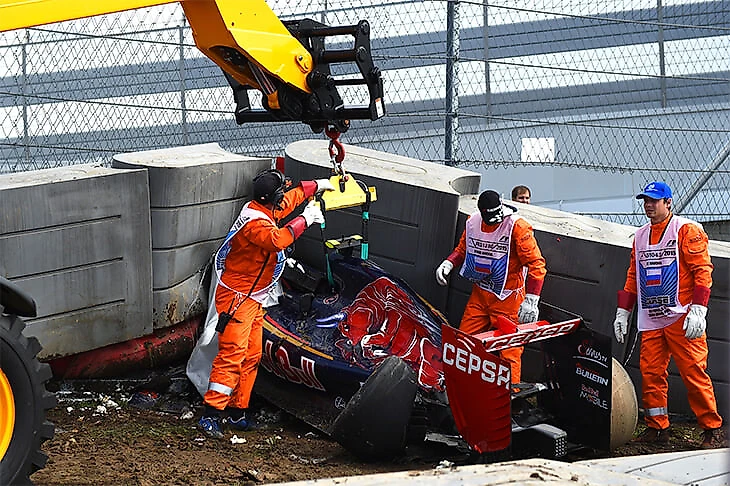 Главные аварии Гран-при России: крэш с перегрузкой 46G, финал финской битвы за топ-3, вынос Феттеля Квятом
