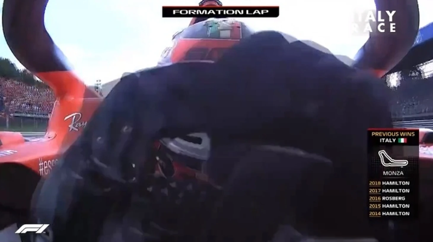 Перед стартом режиссеры трансляции решили напомнить о тотальной доминации Mercedes в Италии: последние 5 лет побеждали пилоты именно этой команды!