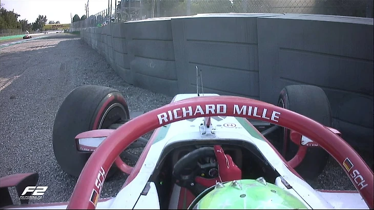 Китаец пошел в атаку в первом повороте, и Мик начал тормозить как можно позже. Но, к сожалению, перестарался, заблокировал резину (оставив на ней большую проплешину) и был вынужден срезать поворот. Вернуться на трассу можно было только объехав специальные барьеры. В итоге Шуми вернулся позади Лундгора, на шестой позиции.