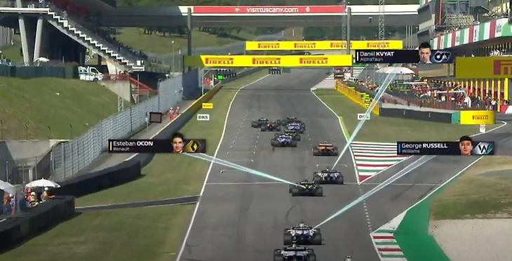 Это онборд Расселла: посмотрите, насколько он отстал от соперников!