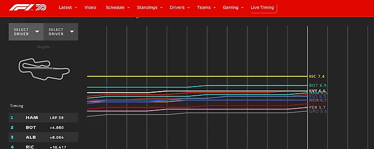 После каждой гонки на официальном сайте «Формулы-1» в разделе лайвтайминга на странице «выступлений» публикуются оценки пилотам за Гран-при по данным телеметрии. Вот – рейтинг после заезда на «Муджелло».