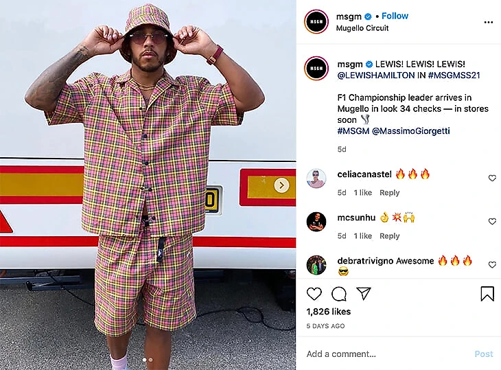 Так что же это за наряд, вокруг которого возникло столько разговоров? Многие подумали, что это новая коллекция от титульного партнера команды и самого Хэмилтона Tommy Hilfiger, тогда было бы логично что команда стала защищать новый образ Льюиса. Но все не так просто. На одной из фоток засветилась большая надпись на спине «MSGM Milano» – это итальянский бренд, созданный в 2008 году.
