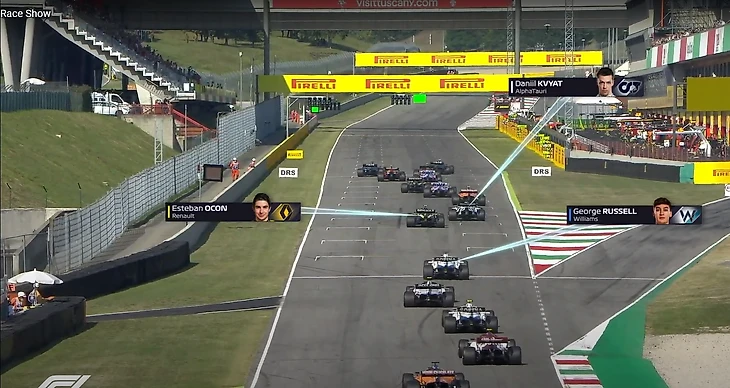 «Если переместиться на машину Даниила в последнем повороте [перед рестартом], можно увидеть: перед ним и болидом Ландо Норриса впереди довольно большой разрыв.