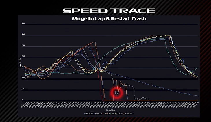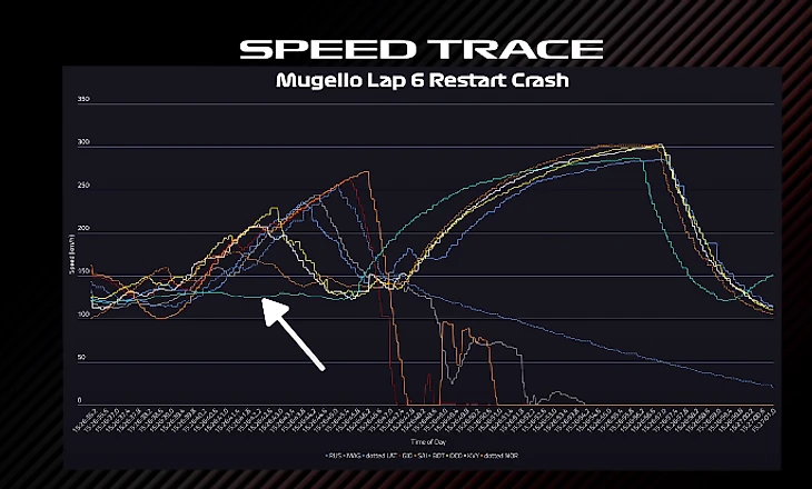 Конфуз начался с Рассела. И даже график это подтверждает. Пято машин с газом в пол до момента ускорения Бота - четыре схода