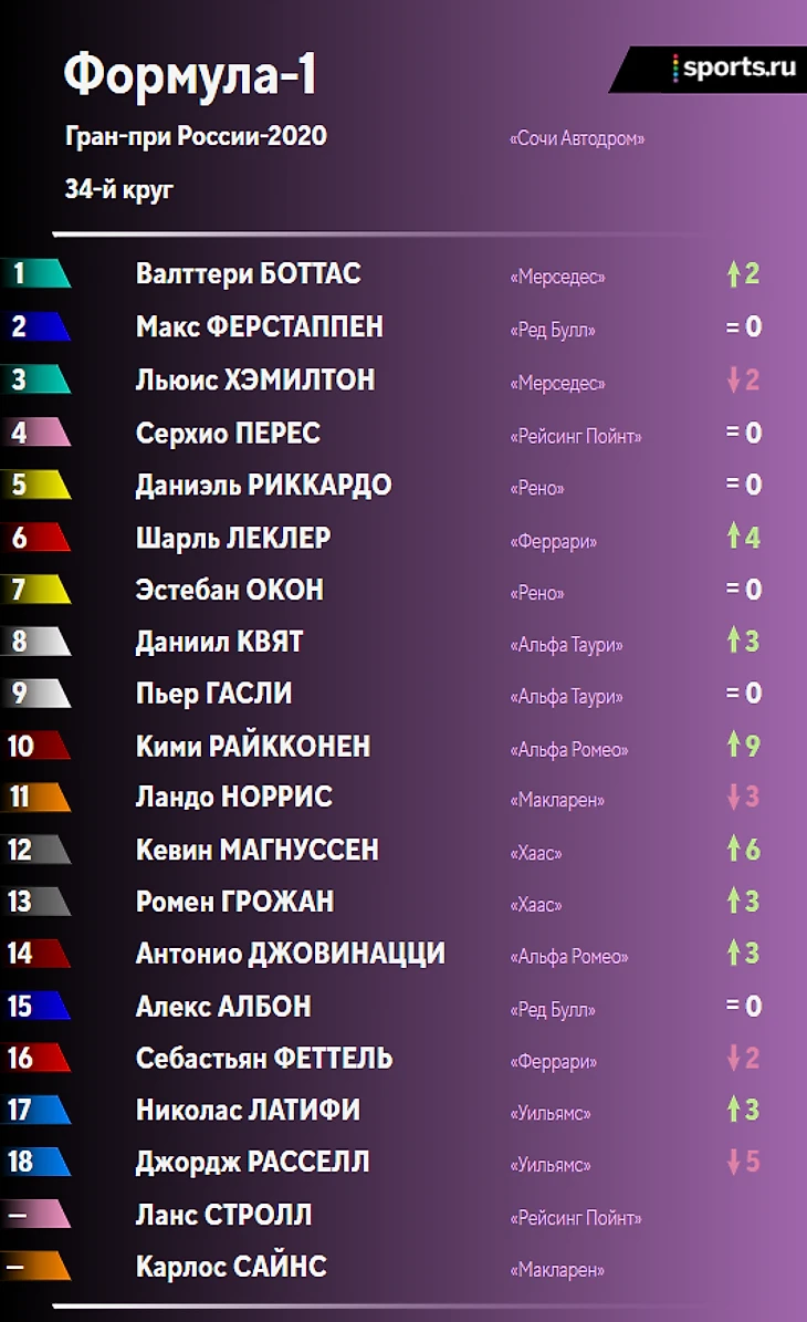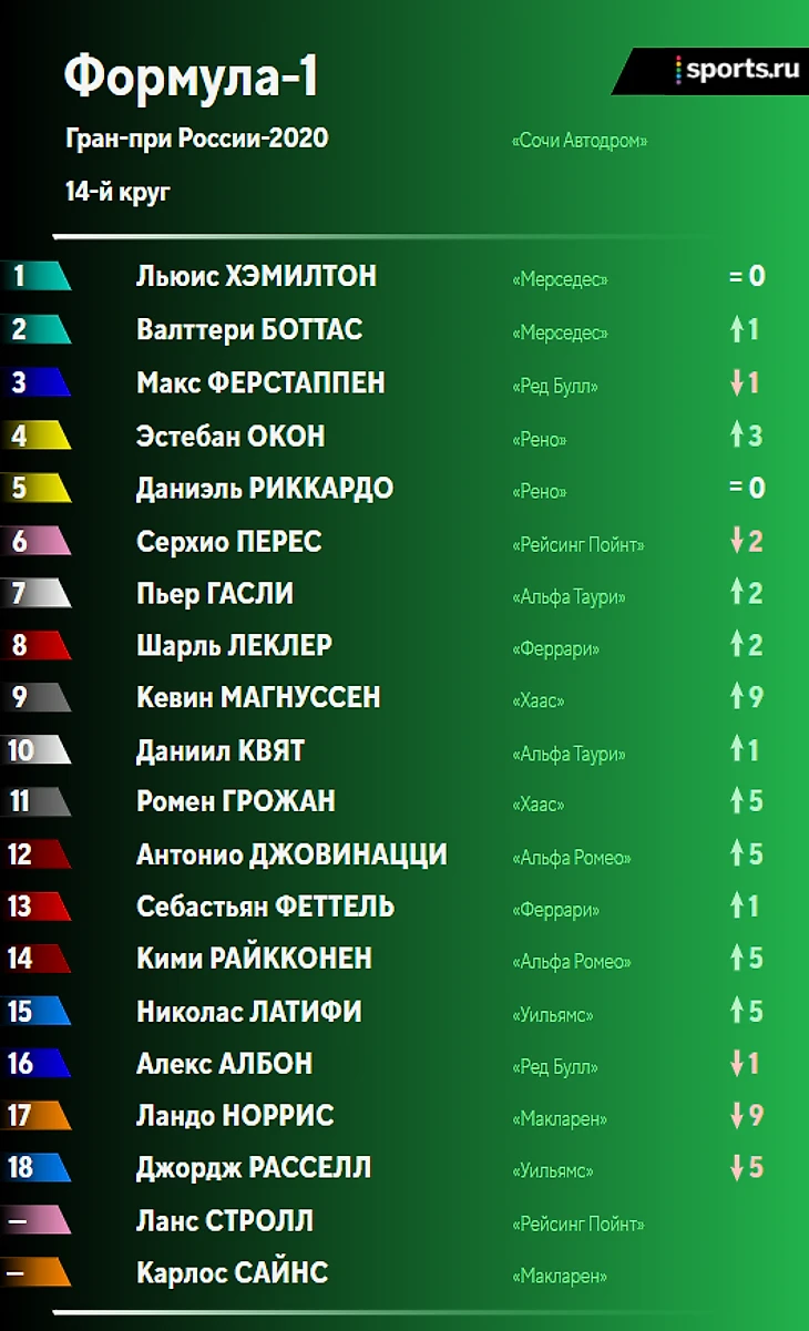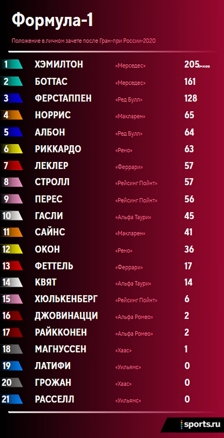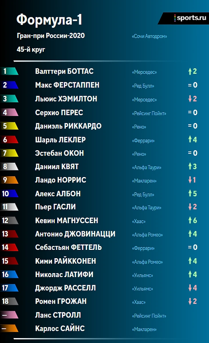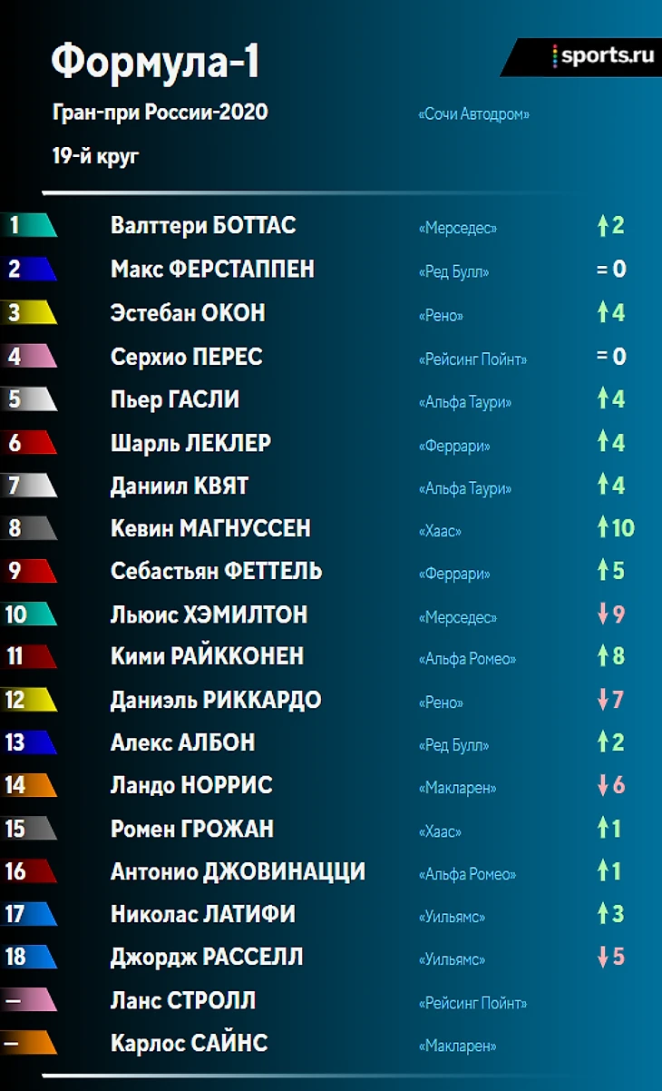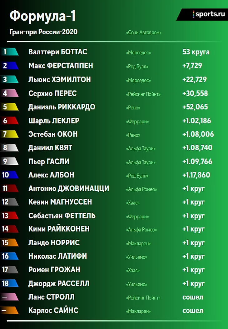 Итоги гонки и положение в личном и командном зачетах после Гран-при России: