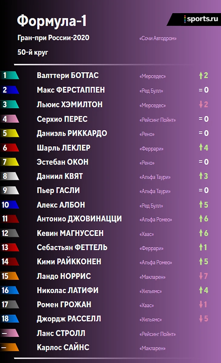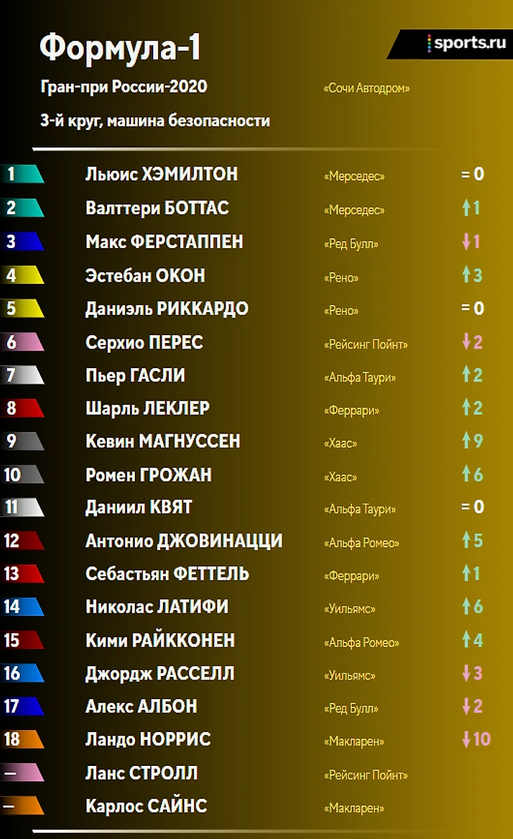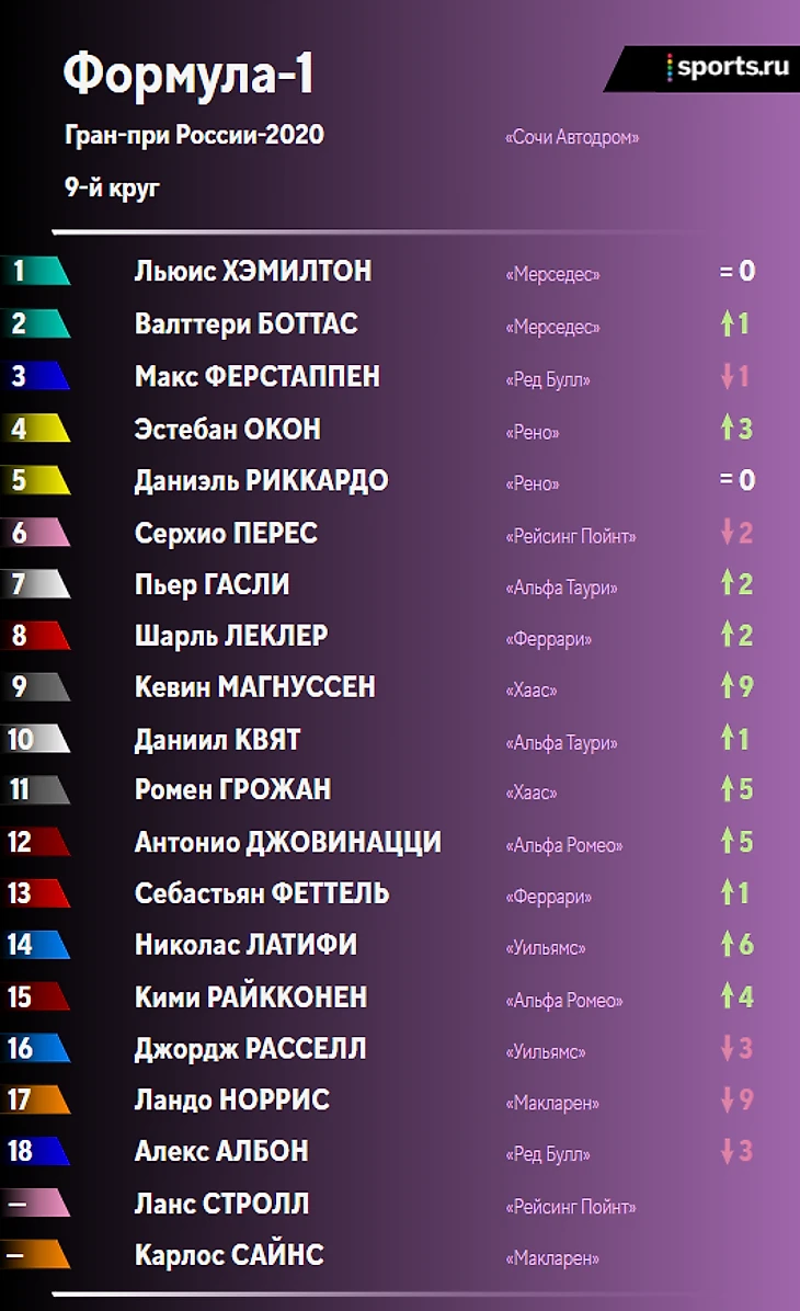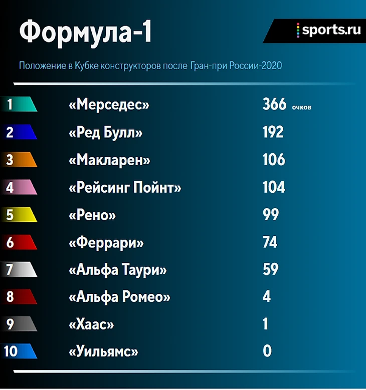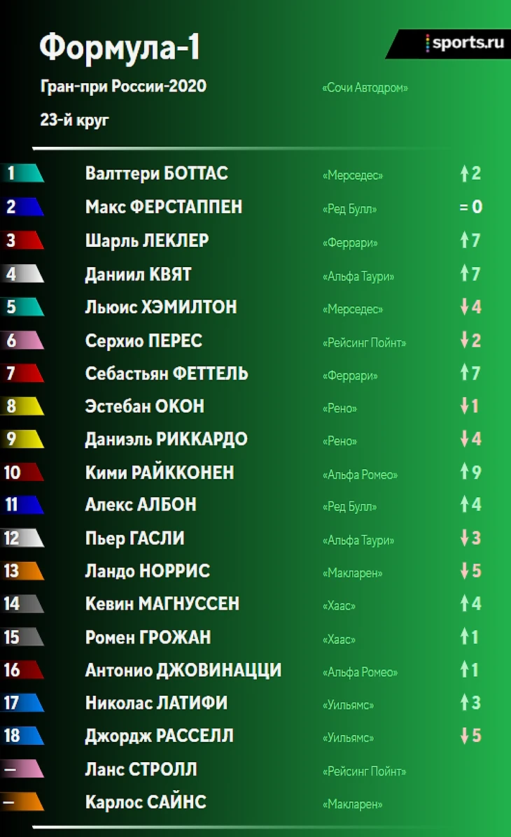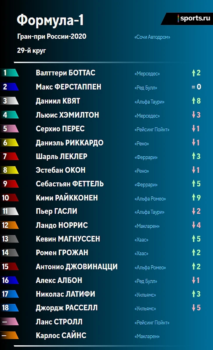 Итоги гонки и положение в личном и командном зачетах после Гран-при России: