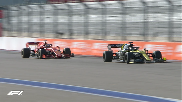 30-й круг. Риккардо теперь рвет и мечет. Он быстренько обогнал Феттеля, а затем Леклера.
