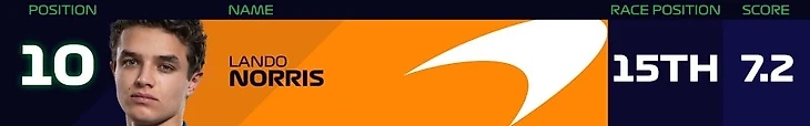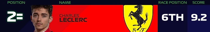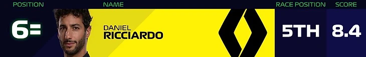 На официальном сайте «Формулы-1» после каждого Гран-при выпускают чарт лучших гонщиков. Его формирует объединение пяти экспертов на основании пяти ключевых характеристик без влияния уровня машины. Оценки экспертов сводят в единый «гоночный рейтинг», с помощью которого в процессе сезона высчитают топ-10 по сезону, а также средний балл ко конкретному этапу.