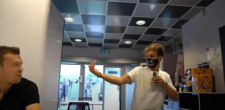 А это – обычная встреча россиянина с нынешним напарником Пьером Гасли в столовой. Совершенно обыденное приветствие.